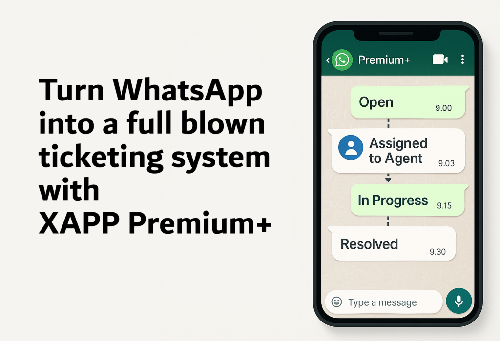 Weβre thrilled to introduce XAPP Premium+, a transformative solution that elevates WhatsApp from a simple messaging app to a comprehensive customer support and ticketing platform. Designed for businesses of all sizes, XAPP Premium+ streamlines customer interactions, ensuring no message goes unnoticed and every query is addressed efficiently.β ποΈ Transform WhatsApp into a Robust Ticketing System […]